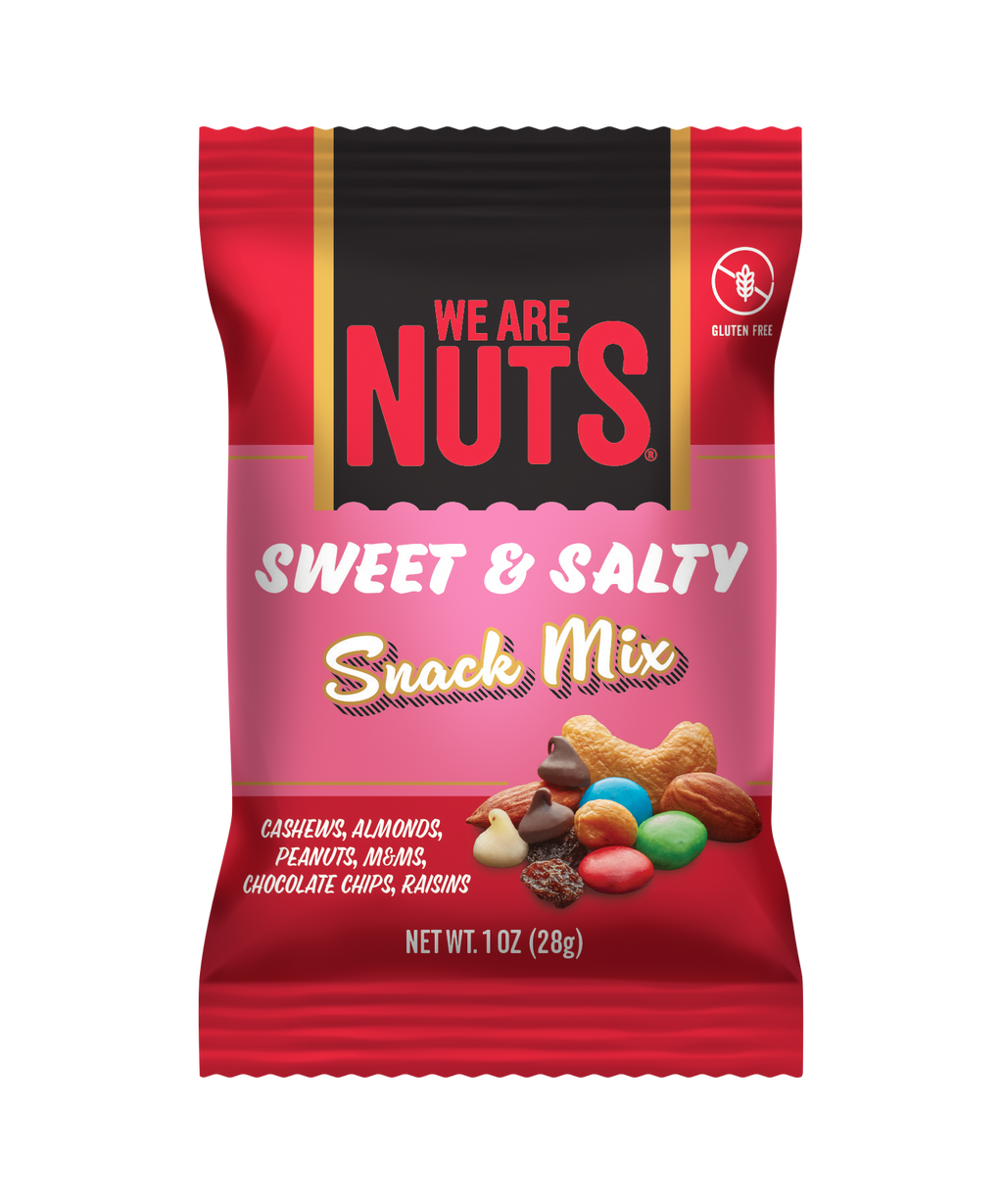 Indulge in the timeless combination of sweet and salty with our Sweet & Salty Snack Mix. This 1 oz blend brings together fresh roasted and salted cashews, almonds, and peanuts with the delightful sweetness of raisins, M&M’s®, and semi-sweet & white chocolate chips. Every bite offers a satisfying mix of crunch and sweetness, perfect for satisfying cravings any time of day.