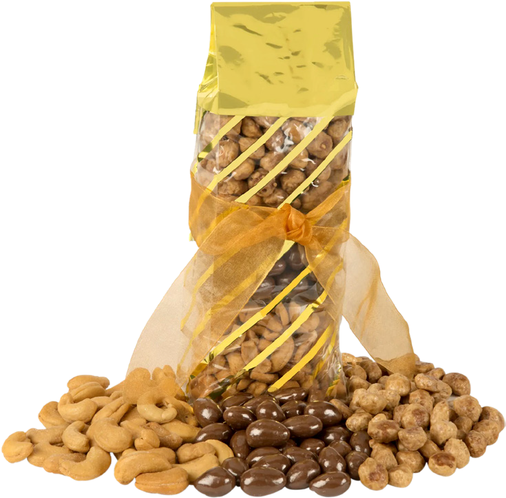 Get all the glitz and glamour with our seasonal Glitz Bag! This 18 oz bag features 6 oz each of Extra Large Whole Cashews, Original Butter Toffee Peanuts, and Milk Chocolate Almonds, offering three of our best-selling treats in one delightful mix. Perfect for gifting, this seasonal favorite is available from October through the New Year or while supplies last. Add a touch of sparkle to your holiday season!