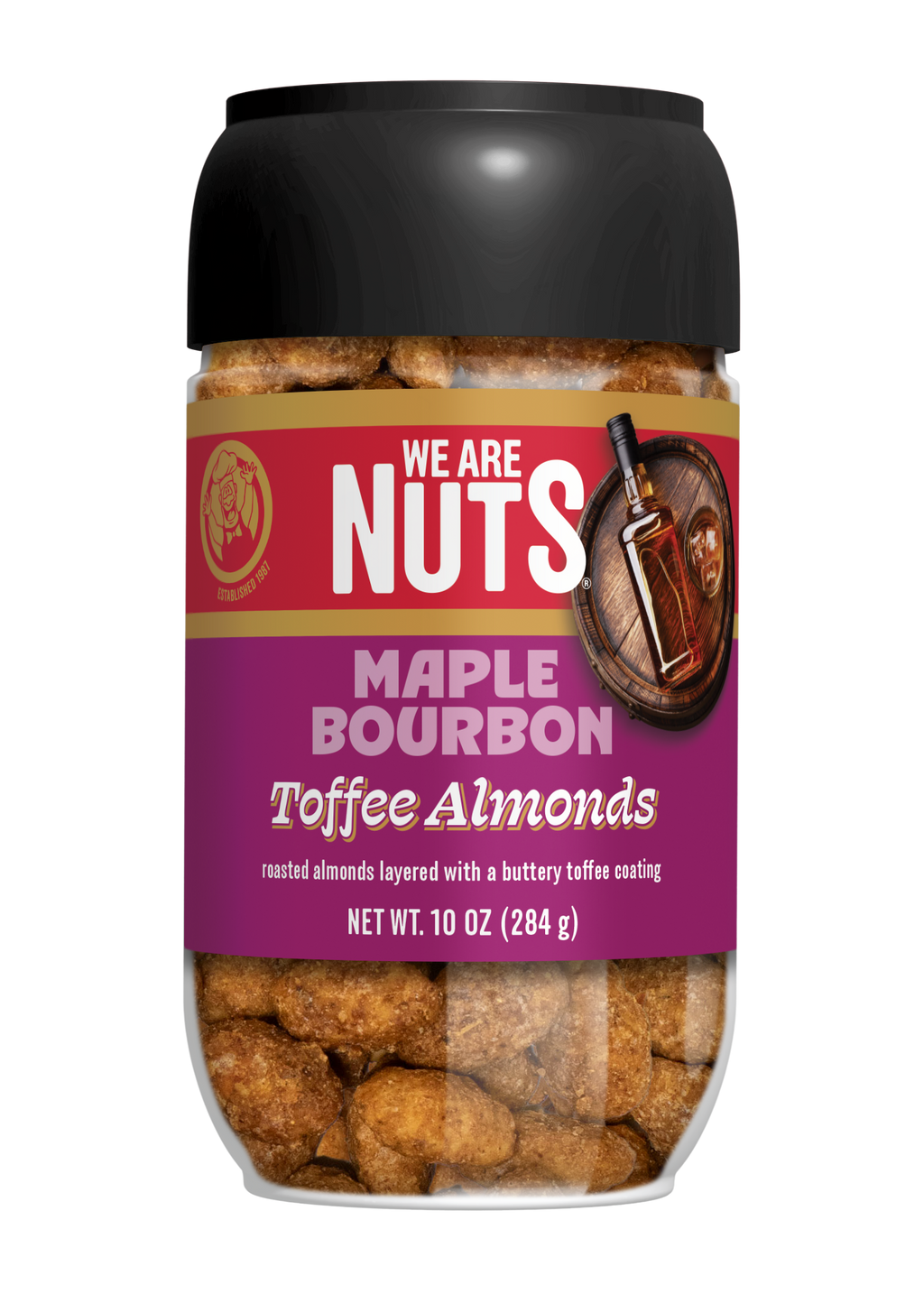 Experience the exceptional taste of our Maple Bourbon Toffee Almonds, where premium roasted almonds are coated in buttery toffee infused with Tattersall Rye Bourbon and 100% Pure Maple Syrup from Hamel Maple Syrup. What sets them apart is our partnership with NETZRO to incorporate upcycled Twin Cities Brewer’s Spent Grain, adding depth while supporting eco-friendly practices. Crafted in small batches by our family-owned business, these almonds embody our dedication to quality, innovation, and sustainability.